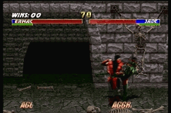 Mortal Kombat (abreviado MK) es el primer videojuego de la saga Mortal Kombat, fue lanzado en 1992 de manos de Midway Games para Arcade.Mortal Kombat presentó 5 botones, dos para los puños y dos para las patadas (ambos altos y bajos), y un botón de bloqueo. El bloqueo era especial porque otros juegos del género usaban un sistema que involucraba mantener la palanca atrás. En Mortal Kombat manteniendo atrás la palanca se podía mover al personaje haciéndolo retroceder, pero aún en esa posición podían contraatacar. Se creó una barrera entre los jugadores, los experimentados en el sistema de Mortal Kombat y los adaptados al sistema de Street Fighter.
